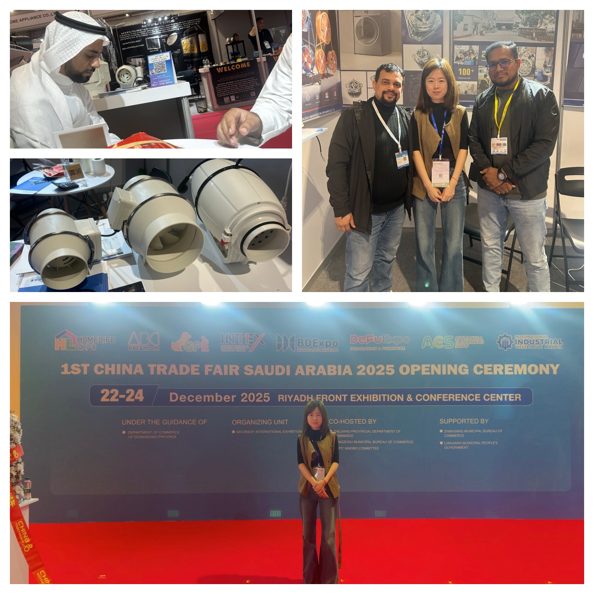 اختتمت شركة Shengzhou Qiantai Electric Appliance Co., Ltd.، وهي شركة تصنيع رائدة مقرها في "مدينة المحركات" بمقاطعة تشجيانغ، مؤخرًا مشاركة ناجحة للغاية في المعرض الافتتاحي المعرض التجاري الصيني الأول في المملكة العربية السعودية 2025 . الحدث الذي أقيم من من 22 إلى 24 ديسمبر 2025 في مركز واجهة الرياض للمعارض والمؤتمرات المرموق، قدمت منصة ممتازة للشركة للتعامل مع سوق الشرق الأوسط وعرض مجموعتها المبتكرة من منتجات التهوية.